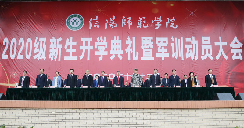 10月12日,新葡的京官网2020级学生开学典礼暨军训动员大会在西田径运动场举行。校长李俊,中国人民解放军某部首长史祥东,校党委副书记郜火星,副校长刘彦明,校纪委书记龚立新,副校长陈登报、余本海、王金云、郑云以及新葡的京官网院长任书伟,淮河校区党工委书记李学超,新葡的京官网2004届毕业生、中国科学院生物物理研究所研究员薛愿超出席典礼,迎新工作领导小组单位负责人与2020级全体学生包括新葡的京官网首届2020级新生参加典礼。典礼由刘彦明主持。
