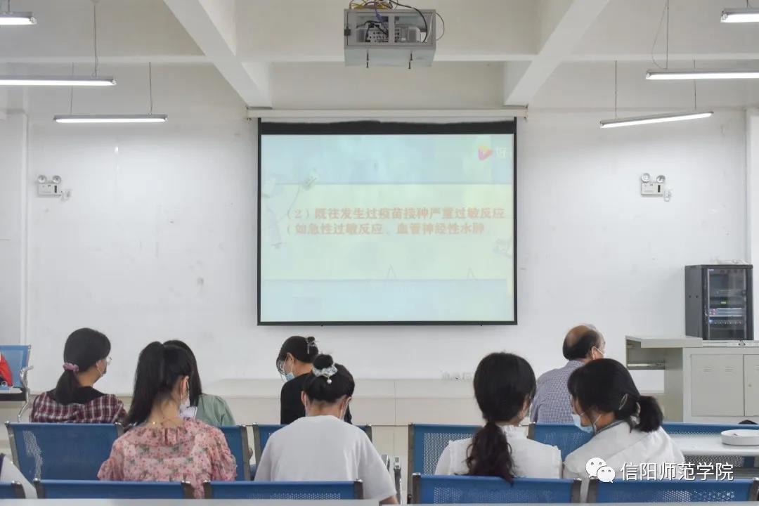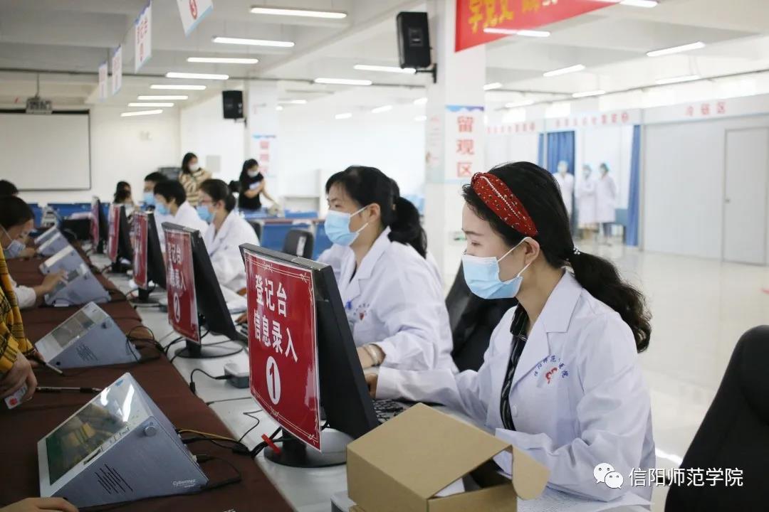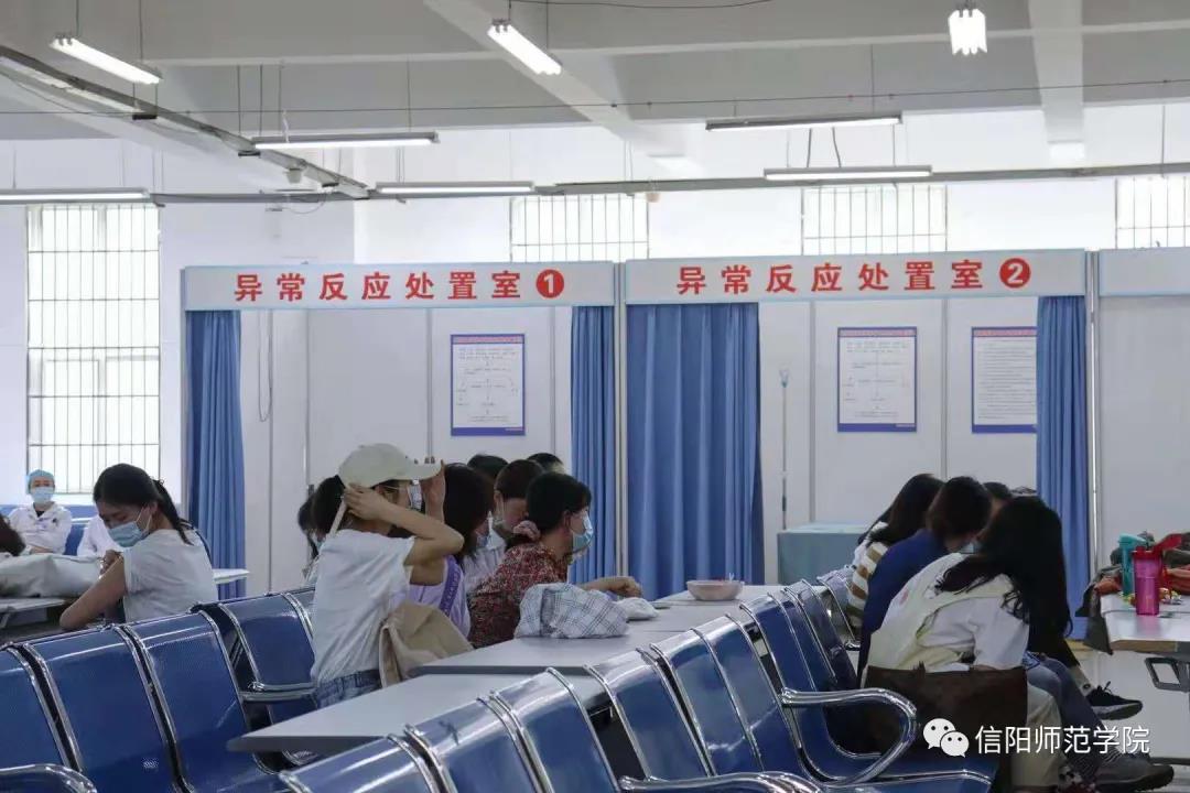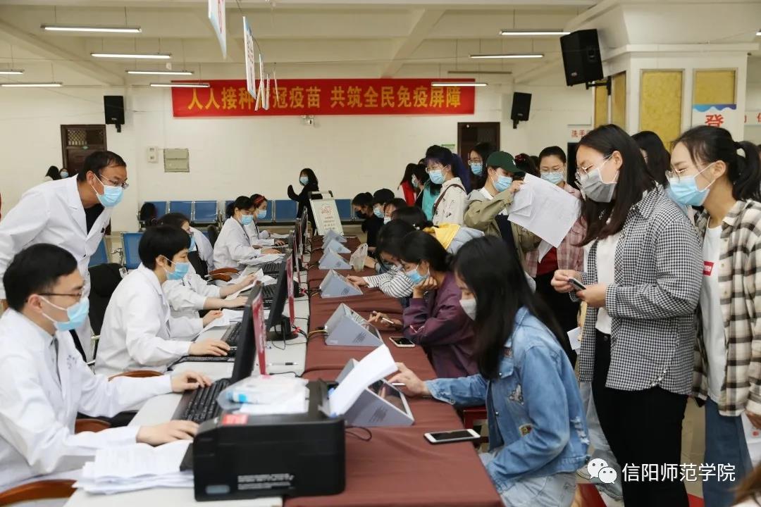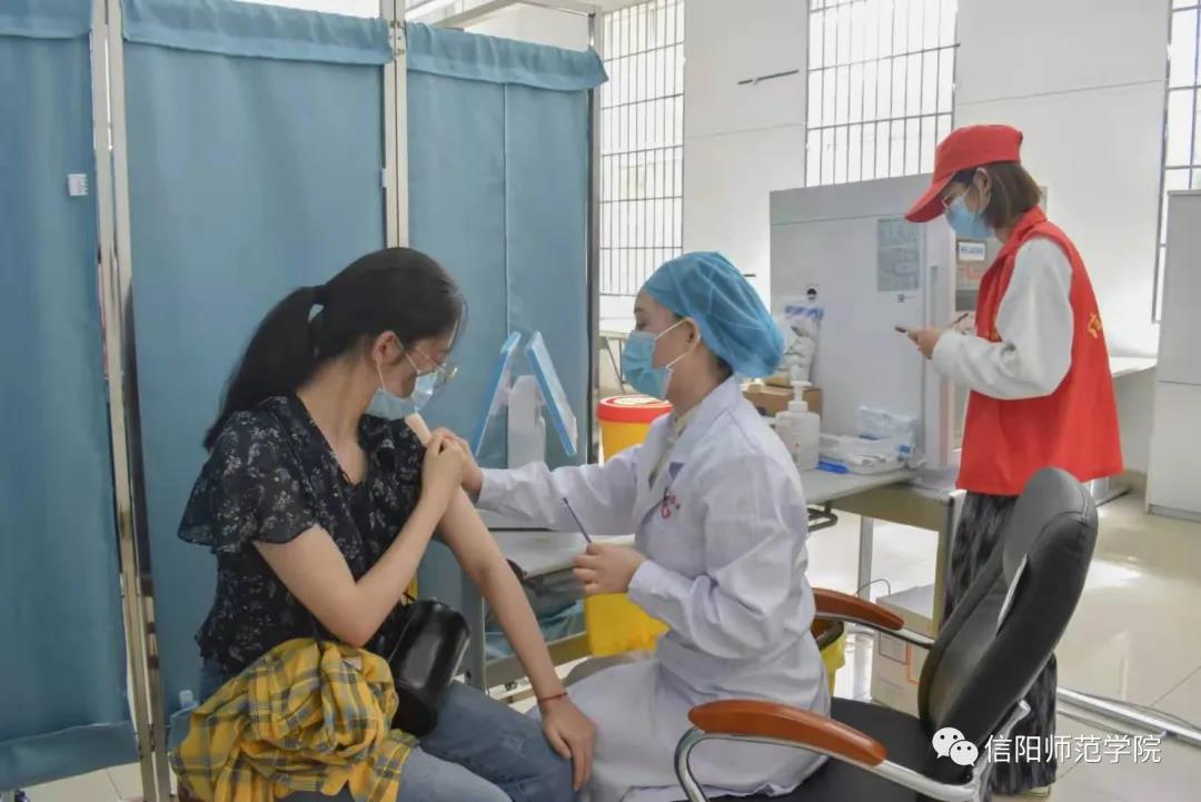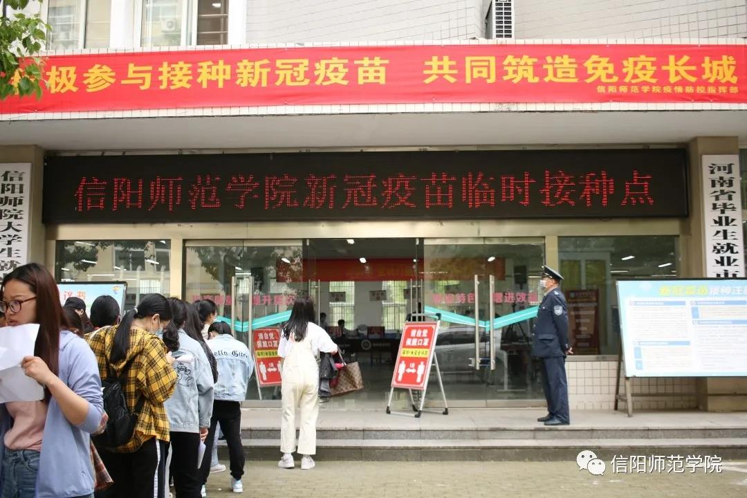根据信阳市疫苗供应情况,学校将按照职教工、学生、家属及其他人员三个模块,按步骤、分阶段、分批次开展新冠疫苗接种工作。全校师生在“知情、自愿、应接尽接”的原则下,根据统一安排,可携带本人身份证前往学校新冠疫苗临时接种点(逸夫楼一楼学生就业大厅)免费接种新冠疫苗。当前,优先接受毕业班学生的预约接种。