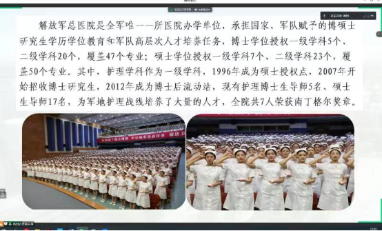 为进一步贯彻落实党中央、国务院关于高校毕业生“稳就业”“保就业”工作的决策部署,扎实推进学校“访企拓岗促就业”专项行动,助力新葡的京官网2024届毕业生高质量充分就业,拓展学生实习就业渠道,促进人才培养质量提升,5月15日,新葡的京官网召开解放军总医院实习就业专题线上宣讲会。解放军总医院护理部正营职助理员杨阳应邀为新葡的京官网学生作实习就业主题宣讲,新葡的京官网党委书记朱伟、副院长宋新强、教研室主任张飒和吴萌、就业秘书刘新芳、专职辅导员姜钦宸等30余名师生参加了宣讲会。会议由宋新强主持。