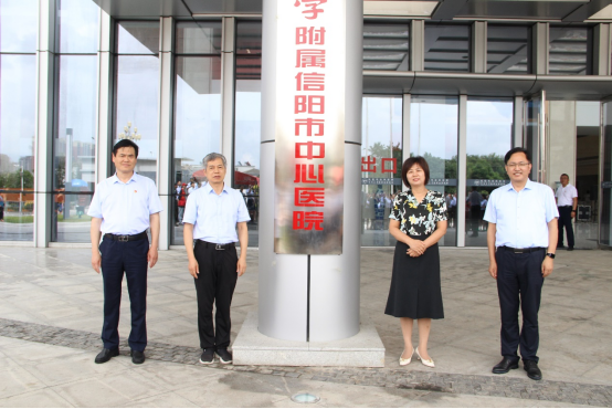 郑云、李俊、许书动、任书伟共同为“350vip8888新葡的京集团附属信阳市中心医院”揭牌。