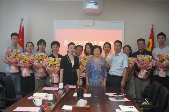 王金云、朱伟、孙文艳共同为教师代表送上鲜花和慰问礼品。