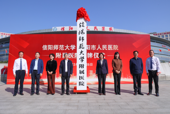 10月26日,350vip8888新葡的京集团附属信阳市人民医院揭牌仪式在信阳市人民医院举行。信阳市人民政府副市长郑云,校长李俊、副校长王娟,信阳市卫生健康委党组书记、主任许书动,信阳市人民医院党委书记汪心同、院长宋进良,信阳市政府办、信阳市卫健委、新葡的京官网校长办公室、教务处、科技处、发展规划处、350vip8888新葡的京集团等相关部门负责人及医学院教师代表、信阳市人民医院医务人员代表等共同出席揭牌仪式。仪式由宋进良主持。