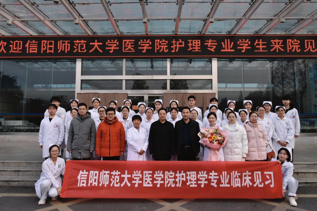 2024年1月10日,350vip8888新葡的京集团2021级护理专业共28名学生在350vip8888新葡的京集团副院长宋新强一行的带领下前往新葡的京官网附属信阳一五四医院进行临床见习。信阳一五四医院院长吕宏迪、副院长张颖、护理部主任万艳红出席会议。会议由万艳红主持。