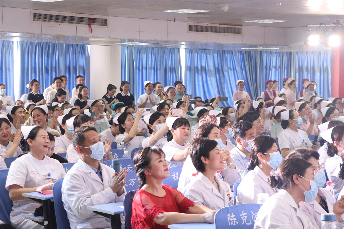 在温情的五月,我们迎来了第110个国际护士节。 为坚定不忘初心、牢记使命信念,继承和发扬南丁格尔精神,激励护理人员的工作积极性,信阳市中心医院隆重举行了庆祝5.12国际护士节表彰大会。 大会在《信阳市中心医院院歌》激昂的旋律中拉开帷幕。 会议由护理部主任刘丽主持。她满怀激情,满怀信心,满怀感恩,带领大家一起迎来今年的护士节。 信阳市中心医院党委书记、院长任书伟进行了热情洋溢的致辞。他充分肯定了护理工作取得的成绩,并提出殷切希望。希望他们坚持终身学习,让知识与技术成为天使的翅膀;希望他们坚守护理阵地,保证患者的生命安全和生活质量,实现自身价值;希望他们做好服务,用一颗包容的心和一双愿意工作的手,做好本职工作。 副院长夏庆彬宣读了《信阳市中心医院关于表彰优秀护士优秀护士长的决定》,鼓励受表彰人员要珍惜荣誉、再接再厉,希望全院护士向他们学习,不断进步。 在欢快热烈的音乐声中,医院领导分别为优秀护士长、优秀护士代表进行颁奖。 神经外科护士长吴开丽代表优秀护士进行了发言。 表彰大会结束后,护理人员为大家带来了一台精彩的演出。他们或青春或稳健,或端庄或飞扬,或感人或诙谐,让全场响起一阵又一阵的热烈掌声,一起又一起的开怀大笑,还有一次又一次的潸然泪下。在舞台上,他们不是在表演,而是在用心诉说护理人的热血情怀。 舞蹈《红手印》,把观众带到了肆虐之际,白衣天使们写下请战书,按上红手印,义无反顾奔赴战场。 走秀节目《天使风采》,不仅有护士的风采,还有医生的倾情加盟,他们的风华赢得了阵阵掌声。 小品《长大后我就成了你》则从一个普通护士的子女高考志愿报名入手,幽默风趣地反应了护士生活工作的艰辛与坚守。 大外科各科主任、护士长以饱满的热情给大家带来了快板《乘风破浪的大外科》,在欢声笑语中宣传了外科的精湛技术,描绘了大外科的美好前景。 情景舞蹈《战疫、战医》,真情演绎了疫情期间的生死时速,感人肺腑,催人泪下。 诗朗诵《我的南方和北方》,声情并茂,抑扬顿挫,充分彰显了医务工作者的爱国情怀。 红歌《映山红》,把大家带回了那段光辉岁月,因为陆伟主任的加盟锦上添花。 舞蹈《森林童话中的天使》,纯洁唯美,宛若天使将爱洒向人间。 他们是天使,他们更是勇士,他们怀着一颗永远柔软的心,怀着一颗永远温暖的心,怀着一颗永远向阳的心,以崇高的职业情怀去聆听生命,触摸生命,敬畏生命。 向他们致敬!