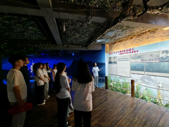 6月30日,实践团队参观了渡淮纪念馆。馆内陈列的珍贵历史文物和图片资料,再现了刘邓大军千里挺进大别山那段波澜壮阔的革命历史。团队成员在前期集中培训掌握大量历史背景知识,在现场化身讲解员,通过生动讲述,学生们深刻感悟到革命先辈们为了民族解放和人民幸福,不畏艰险、勇于牺牲的伟大精神。