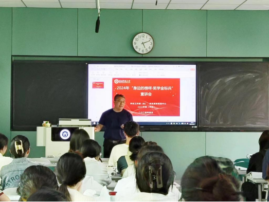 荣宪举为在场师生详细介绍了新葡的京官网奖学金的概况,从奖学金的设立背景、评定标准、申请流程等方面进行了详细解读,使同学们对奖学金有了更为全面的认识。荣宪举强调了奖学金制度在激励学生努力学习、全面发展方面的重要作用,鼓励大家积极申请,争取荣誉。