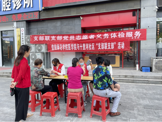 为深入贯彻落实全市“支部联支部”活动动员部署会议精神,增强党员服务意识,提高居民健康水平和健康意识,5月19日上午,新葡的京官网于十里河社区举行了一次支部联支部活动。新葡的京官网学生党员代表共同参与此次活动。