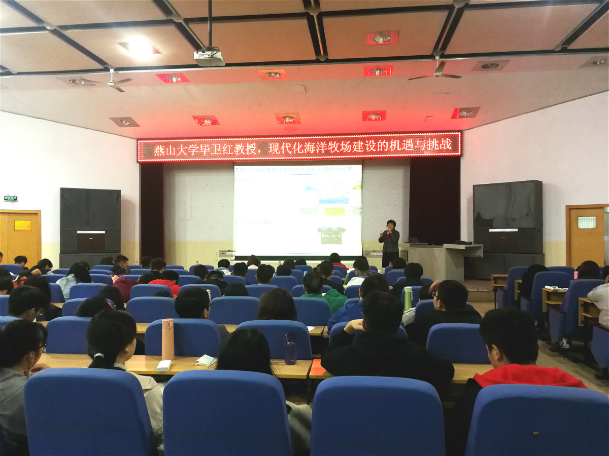 2019年10月29日下午,燕山大学信息科学与工程学院教授、河北省特种光纤与光纤传感重点实验室主任毕卫红教授应MG冰球突破官网邀请在昌黎校区学术报告厅作了题为《现代化海洋牧场建设的机遇与挑战》的报告。MG冰球突破官网电子信息工程专业全体学生和部分老师聆听了报告。MG冰球突破官网王枫博士主持了报告会。