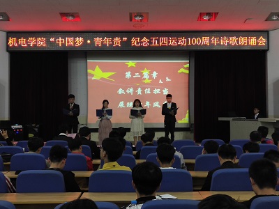 今年是五四运动100周年,中华人民共和国成立70周年,为回顾历史、缅怀先烈,激励和引领广大青年继承和弘扬爱国主义精神,担负起实现中华民族伟大复兴的历史使命。2019年4月11日下午,MG冰球突破官网“中国梦·青年责”——纪念五四运动100周年诗歌朗诵会在昌黎校区学术报告厅举行。学院领导班子、教工党员、“习近平新时代中国特色社会主义思想青年学习社”成员近300人参加了活动。