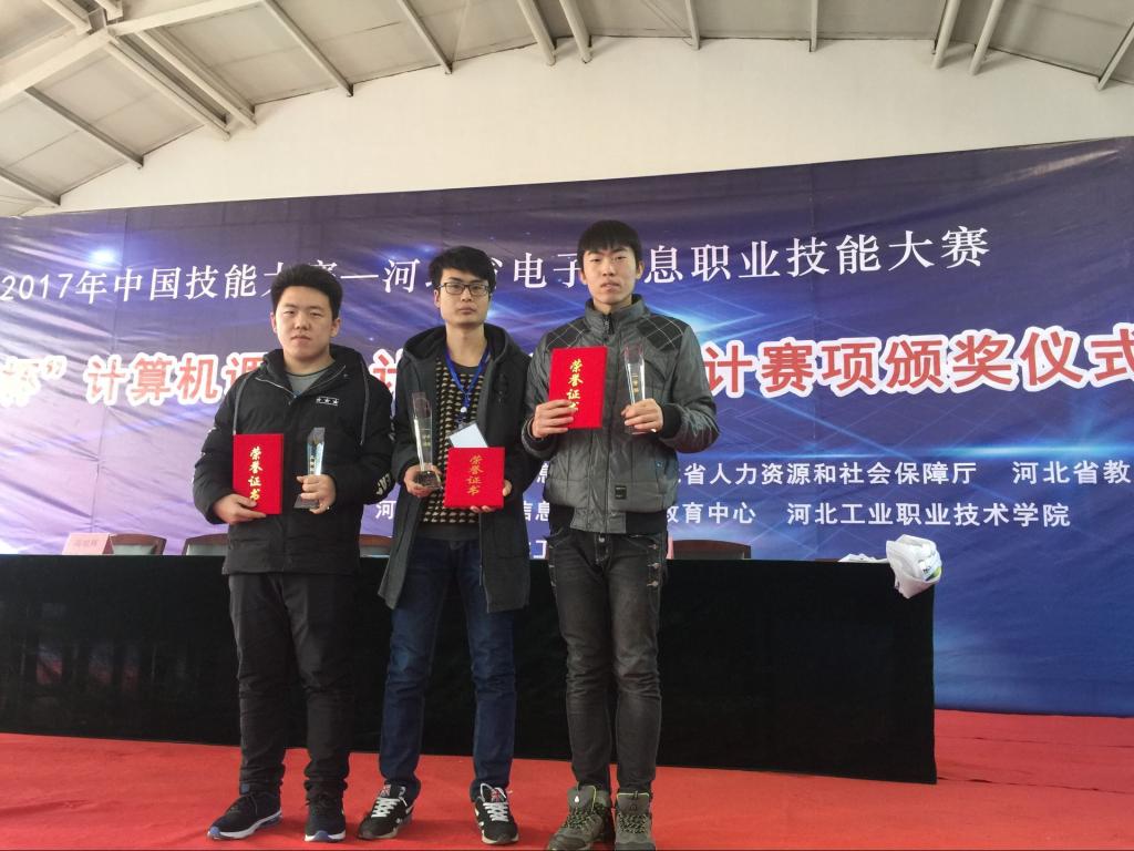 2017年12月16日,“2017年中国技能大赛——河北省电子信息职业技能大赛”在河北工业职业技术学院拉开帷幕。由MG冰球突破官网陈芳老师带领张磊、杜江山、潘家鑫三名同学组成的团队,参加了“计算机辅助设计”项目的角逐,并取得佳绩,荣获团体二等奖1项、个人一等奖1项、个人二等奖1项、个人三等奖1项。