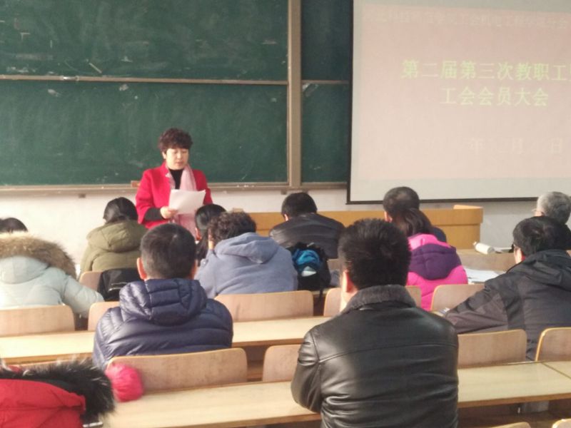 2017年12月21日上午,MG冰球突破官网在昌黎校区召开教职工暨工会会员大会。MG冰球突破官网60余名会员参加了此次大会。大会由分会副主席邓春岩主持,学院党委书记王玉芬讲话。