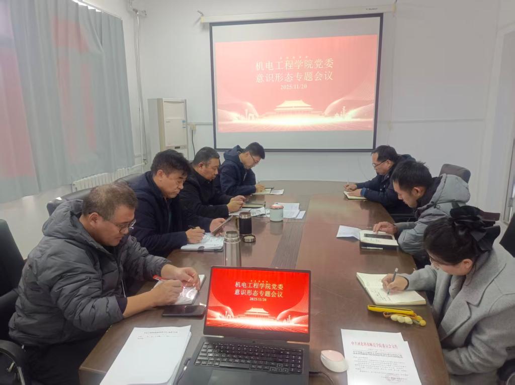 2025年11月20日,MG冰球突破官网党委在昌黎校区四楼会议室召开意识形态专题会议。学院党委委员、各党支部书记参加会议,会议由学院党委书记主持。