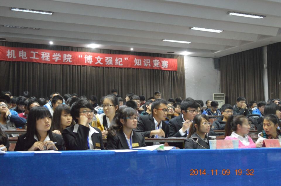 2014年11月9日晚上7点,MG冰球突破官网在2号阶梯教室举行了“博文强纪”知识竞赛。出席活动的有学工办主任张丽玲老师、分团委书记郑建华老师,学生会主席团以及2014级学生。本次知识竞赛的范围是百科知识和学生手册,旨在扩大同学们的视野,提升大学文化素质,加强同学们对校规校纪的认识,促进学风建设,营造浓郁校园学习氛围。竞赛的主要环节有:必答题;判断题;移花接木题;抢答题;风险题。每个专业派出三个代表参加,分为个人赛和团体赛。为了调动现场气氛,其中穿插观众互动环节。经过激烈的角逐,14级电气工程及其自动化专业代表队获得冠军,14级机械设计制造及其自动化代表队获得亚军。此次竞赛不仅丰富了同学们的知识积累,同时也锻炼了同学们的团队协作能力。