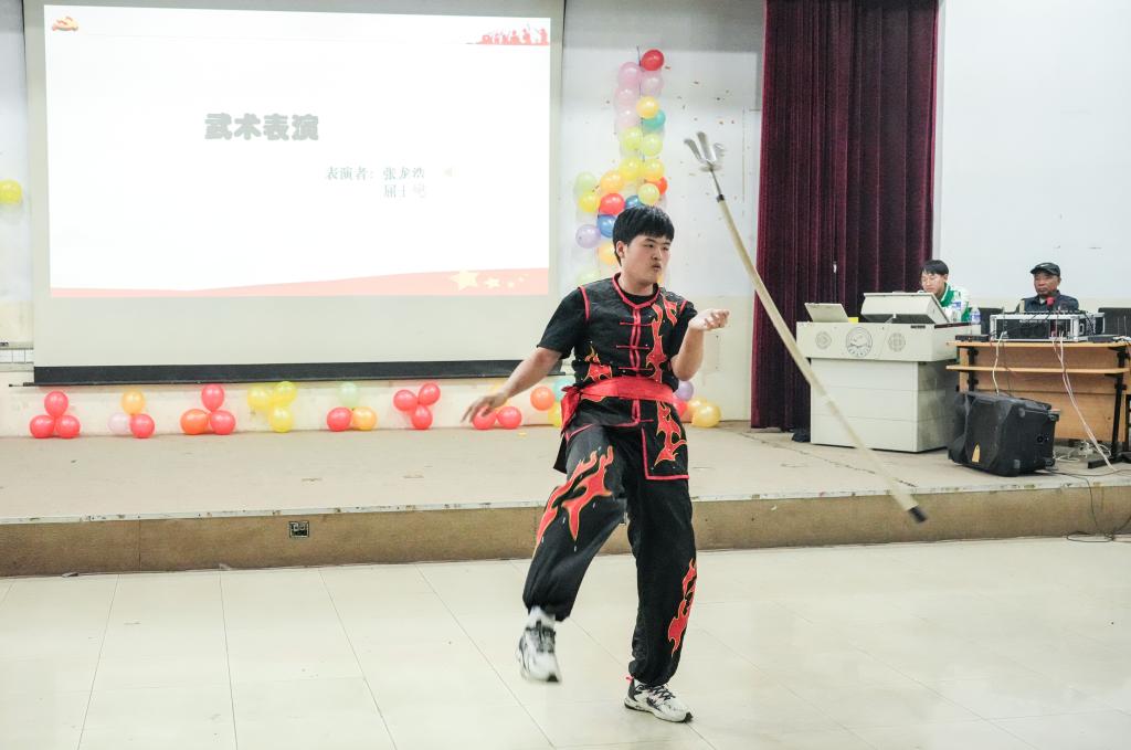 离退休办的老师们也不甘示弱,杜侃老师的武术表演、李佩忠老师的电吹管独奏《我爱你中国》以及董开先老师的京剧清唱《红梅赞》,都展现了他们宝刀未老、风采依旧的精神风貌。