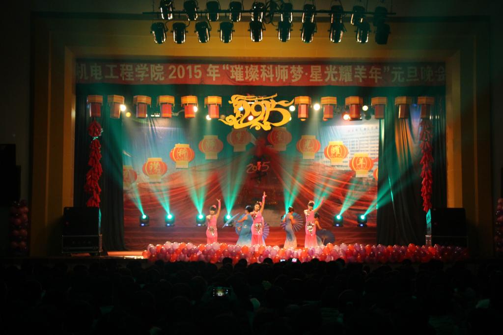 2014年12月28日晚7点,MG冰球突破官网2015年“璀璨科师梦,星光耀羊年”元旦晚会在昌黎校区大学生活动中心隆重举行。红色的背景装扮,充满了新年的气息,MG冰球突破官网上下满怀激情,欢聚一堂,共庆元旦。莅临晚会的嘉宾有:学工部部长、学生处处长冯瑞银;昌黎校区管委会副主任、后勤集团副总经理王宏伟;昌黎校区寓管会主任刘卫东、副主任姚翠琴;化学工程学院党委副书记艾顺来;园艺科技学院党委副书记李佩忠;生命科技学院党委副书记孟庆东;MG冰球突破官网党政领导以及学生处、团委、招生就业处相关老师。此外,二级学院的老师们也观看了演出。