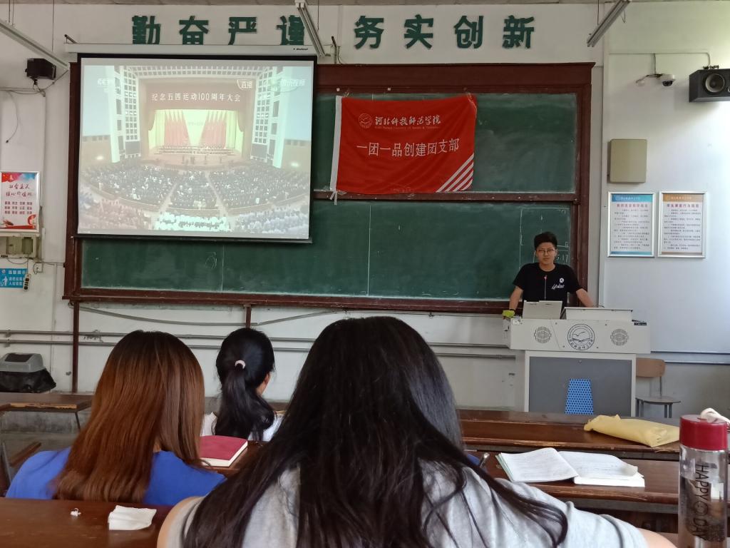 为了纪念五四运动,让同学们达成共识,传承五四精神,2019年5月13日,MG冰球突破官网18级电子信息工程专业团支部在昌黎校区2号楼14阶教室进行了纪念五四运动100周年专题学习活动。学院分团委负责人以及团支部全员参加了本次活动。