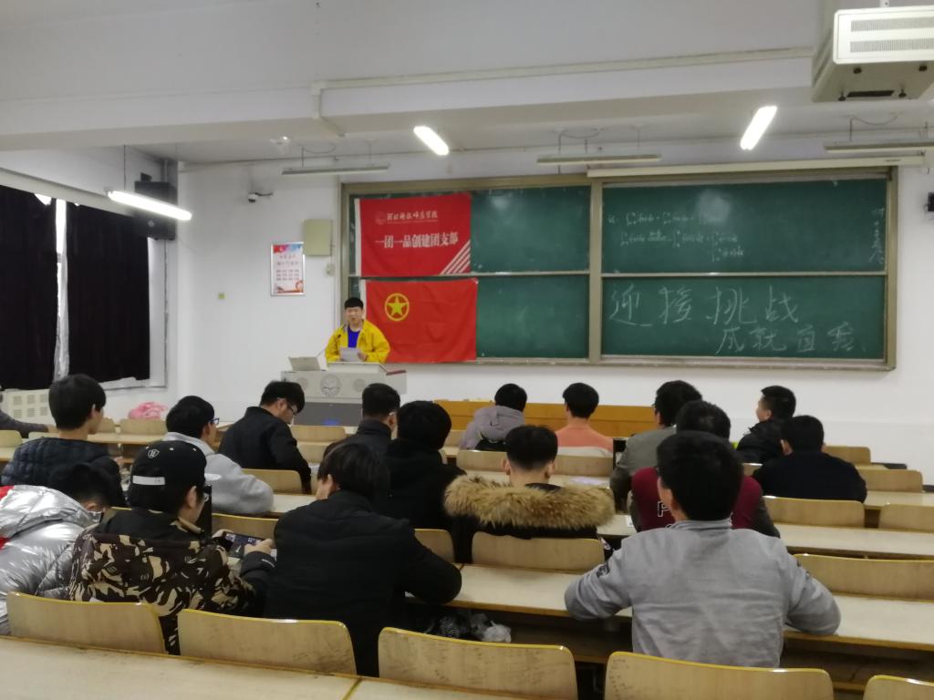 2018年11月29日,MG冰球突破官网机械设计制造及其自动化1603团支部在主楼C207举办了以“迎接挑战•成就自我”为主题的团日活动,团支部全体成员参加。