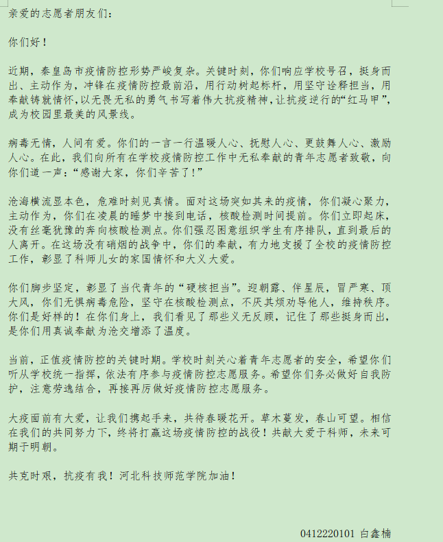 为了广泛弘扬“奉献、友爱、互助、进步”志愿精神,MG冰球突破官网青年志愿者协会于2022年11月—12月举办了“志青春,愿常在”活动。该活动通过结合青年志愿者工作实际,展播志愿者主题文字类、图片类、视频类作品,充分发挥了志愿服务先进典型的示范带头作用,着力展现青年志愿者服务大局、奉献社会、引领成长的青春风采。