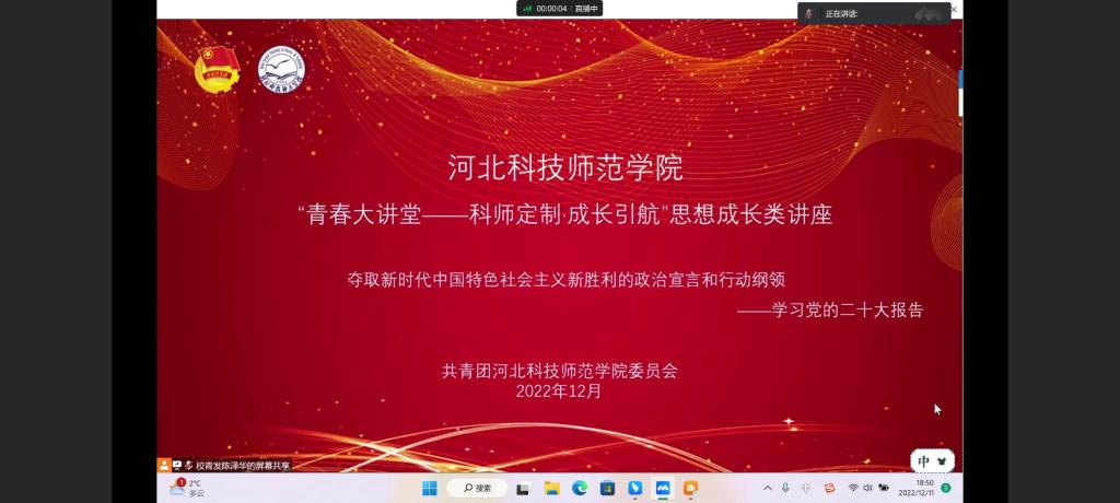 2022年12月11日晚,MG冰球突破官网开展青春大讲堂思想引领类讲座本次讲座学习党的二十大报告讲解了关于夺取新时代中国特色社会主义新胜利的政治宣言和行动纲领