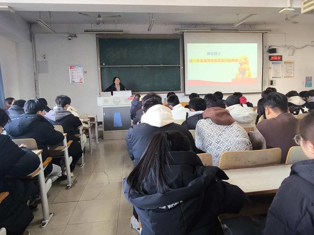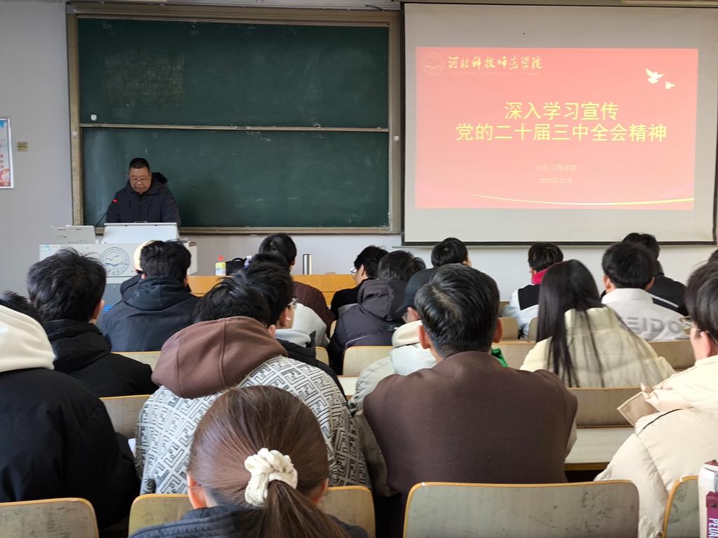 2024年12月6日下午,MG冰球突破官网邀请了校思想政治理论教育宣讲团成员、马克思主义学院杜立文副教授宣讲党的二十届三中全会精神。宣讲会由学院党委负责同志主持,学院全体教职工、学生入党积极分子共160人参加。
