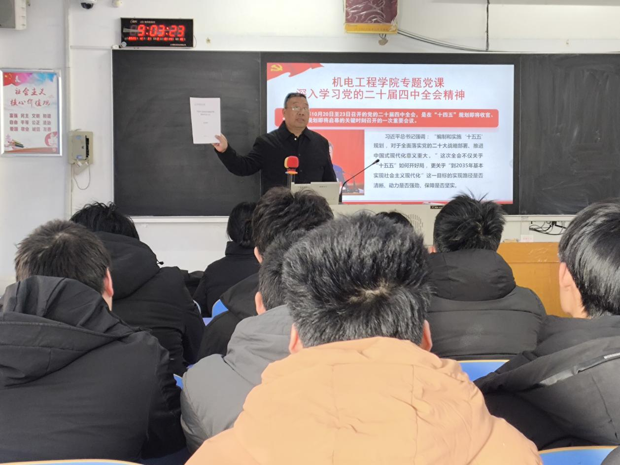 2025年12月3日,MG冰球突破官网党委书记,在昌黎校区C202教室,为电气专业23级学生,举办了深入学习领会党的二十届四中全会精神专题党课,对全会精神进行了系统深入的解读,并就学习贯彻学校第四次党代会精神进行了阐述。